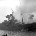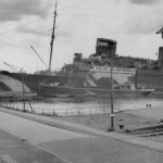As time went by, things changed. In 1936, the old class system was abandoned on board the ship, and the Europa’s accommodation was reclassified as Cabin, Tourist and Third class. This was not the only novelty. As Adolf Hitler wanted to regain Germany’s lost pride after the First World War with plans of starting a full scale war in Europe, the Bremen and Europa was eyed for the use as troop carriers. On August 10, 1939, the Europa made her last peacetime crossing for several years. When Hitler invaded Poland on September 1, the Europa had returned to Germany after that transatlantic voyage. From her position in Bremen, she was sent to Bremerhaven to carry out her war task as a naval accommodation ship. There the ship stayed until plans came to operate her in ‘Operation Sealion’. This operation meant that the Europa would sail to Norway, pick up friendly troops and carry them to southern England, where Germany planned an invasion. This plan was however abandoned, because the German Kriegsmarine opposed it as suicide. In 1942, new plans arrived concerning the Europa. She would be turned into an aircraft carrier with an over 900 feet long flight deck. This was also abandoned together with Hitler’s stopping of the work on the carrier Graf Zeppelin in May that year. This was the last thing the Europa would do for German purposes.