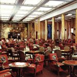 In May 1945, the ship was confiscated by the United States who used her for some major trooping duties later that year. The following year – in March, when Germany’s defeat had been a fact for months – the Europa was handed over to France in order to replace the fabulous Normandie, who had been destroyed by fire at New York harbour in 1942. The French intended to rename the ship Lorraine, but eventually decided upon Liberté. The former Europa was towed to Le Havre for her Compagnie Générale Transatlantique refit. The first change you would notice was that of her funnels. Instead of the yellow N.D.L. livery, they were now in customary C.G.T. colours – red with a black top. In December the same year, the still refitting Liberté broke loose from her moorings during a storm and drifted into the adjacent wreck of the Paris who had sank on the spot after a fire in 1939. The C.G.T. did not want the occurrence with the Normandie to re-appear, so the entire Liberté was deliberately sunk in the harbour on an even keel to prevent her from heeling over. All efforts were then put to raise the ship, and in April the following year the task was completed. The vessel was towed to S:t Nazaire and rebuilt at Penhoët shipyards at the cost of £7,000,000. In 1949, yet another fire broke out on board and destroyed much of the new passenger accommodation areas. Not until August 17, 1950 was the Liberté ready to enter the waves for the glory of France. Her partners became the fabled Île de France and the De Grasse, making the French Line operate a very distinguished trio of ships.