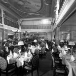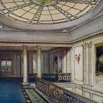 For the Aquitania’s passengers, the thrilling thing about the ship was not her speed. The Lusitania and Mauretania were able to cross the Atlantic with an average speed of approximately 25-26 knots, but the third of the trio would have a limited power for 23 knots. Except for her size – the largest Cunard-built liner until the arrival of the Queen Mary – the most thrilling thing about her was her marvellous interiors. Where her running mates concentrated on speed, Aquitania focused on luxurious passenger areas. The columned Palladian lounge rose through two decks as well the Louis XVI-style first class dining room, the large smoking rooms appearance had been copied from the Royal Naval College in London, creating that shore side feeling that ship designers wanted to put on ships prior to the great change that came in 1927 with the Île de France. These fantastic interiors earned the Aquitania the nickname ‘Ship Beautiful’.