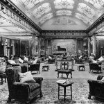 Work soon began on fitting the new Empress out. As she was intended to attract passengers away from other ships, she was designed with a great deal of luxury – something that would also come in handy when she was to go on cruises. One of the most stunning public areas was the Mayfair Lounge, which was done in walnut complemented with designs of silver for the wall panelling. Inspired by ancient Greek architecture, the designers had included tall scagliola columns and pilasters. The ceiling was adorned by a large vault, which featured amber glass and the signs of the zodiac around the base. The Empress of Britain could also offer activities for those more athletically oriented. The first class gymnasium was equipped with a great range of devices, for example bicycling machines, electric horses and punch balls.