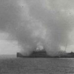 In March 1940, the Empress was sent to Australia and New Zealand to transport troops to Europe. On May 12th she left Freemantle in a troop convoy together with the Empress of Canada, Queen Mary, Aquitania, Mauretania and Royal Mail’s Andes. In the autumn of 1940, the Empress of Britain was on trooping mission between England and Suez via the Cape. On her way back, she called at Cape Town. Leaving with 643 people on board, no one knew that this was to be her last voyage. On October 26th, when the Empress of Britain was off the West Coast of Ireland, she was suddenly attacked by a German long-range Focke-Wulf Condor aircraft. The ship was set on fire in the attack, and it did not take long before the crew had lost control of the raging blaze. The Captain ordered abandon ship, but a skeleton crew remained in an effort to save the ship.