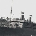 In 1952, the Italia was removed from the Mediterranean and was instead put on the Hamburg-New York run, with Hamburg-Amerika Line as managers. Two years later, she was involved in an accident. On October 6th 1954, whilst docking at Steubenhöft, Cuxhaven, the tug Fairplay 1 suddenly got caught under the Italia’s bow and was pushed underwater. The accident resulted in the loss of two lives.