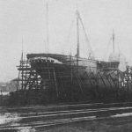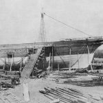 Ever since the pre-historic day when one of the early primates took a log, sat on it, and floated down the river, ships had been made from wood. The industrial revolution in Europe changed all this. The famous British engineer Isambard Kingdom Brunel had proved with his Great Britain of 1845 that ships made of iron would float. When ocean going vessels now reached lengths of 300 feet or more, a stronger material than wood was needed to keep a ship’s hull together in one piece. Brunel had set the standard with the Great Britain of 1843. When Cunard needed a ship to compete with the Collins Line, they commissioned one made of iron from the Scottish shipbuilders Robert Napiers & Sons Ltd.