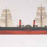And so, Scotia settled into a second career, this time employed to lay telegraph cables. Obviously not as glamorous as the North Atlantic passenger trade, she did experience a few dramatic incidents. In 1896, while 60 miles off Eddystone, an explosion in her cable anti-fouling paint store caused serious damage to the ship’s bow. Fortunately – probably thanks to the safety design from her Cunard days – Scotia managed to stay afloat and reach port. After repairs had been carried out, she was back in service again soon.