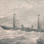 Scotia survived into the 20th century, and in 1902 she was sold to the Commercial Cable Company for use as a repair ship in the Pacific Ocean, based at Guam. However, after only two years with her new owners, on March 11th 1904 the ship ran aground on Spanish Rock on Catalan Bank off Guam, while en route to Honolulu. Luckily, Scotia’s design proved reliable once again. Stuck on the reef amidships, with both ends free, the ship’s iron hull managed to withstand the immense strain until everyone on board had been rescued. But the hull could not take such stress much longer, and before salvage could begin, the Scotia broke her back and sank during a storm two weeks after the initial grounding.