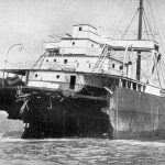 The Suevic was surely in a predicament. The bow was impaled on the shore, and to set it free it had to be lightened. On March 20th, the ship’s crew therefore began transferring cargo from the bow holds to small coastal steamers that had by now come to the assistance. This attempt of freeing the ship could have succeeded, had it not been for the weather.