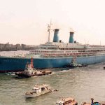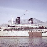 In 1985, the Lauro Line merged with the Chandris Line. In this new company’s service, the Achille Lauro entered the history books that same year. On October 7, 1985 the Achille Lauro was employed on a ten-day cruise. She was supposed to call at Alexandria in order to allow passengers to go to Cairo, and then rejoining the ship at Port Said. Only about half of the passengers went ashore, while the rest stayed on board to enjoy the ship. During the trip from Alexandria to Port Said, the ship was taken hostage by five Palestinian terrorists. This was the first time in history a passenger ship was hijacked like this. The terrorists showed their seriousness – and madness – when they killed the disabled American tourist Leon Klinghoffer, and threw him and his wheelchair overboard. The Egyptian authorities gave the hijackers permission to leave the area without harassment, and the Achille Lauro soon arrived at Port Said. The hijackers left the ship onto a tugboat and made a victory lap around the harbour. They left victorious in an aeroplane, but the American authorities would not accept this and forced the plane down over Sicily. The Egyptian government retained the liner in retaliation. Yet again, the Achille Lauro suffered the repercussions of a crisis that had a great effect on American-Egyptian relations. Eight days later, the Achille Lauro returned to her homeport.